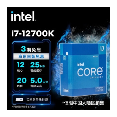 商品名称:英特尔(Intel) CPU处理器 台式机 原盒 12代 i7-12700K【12核20线程】