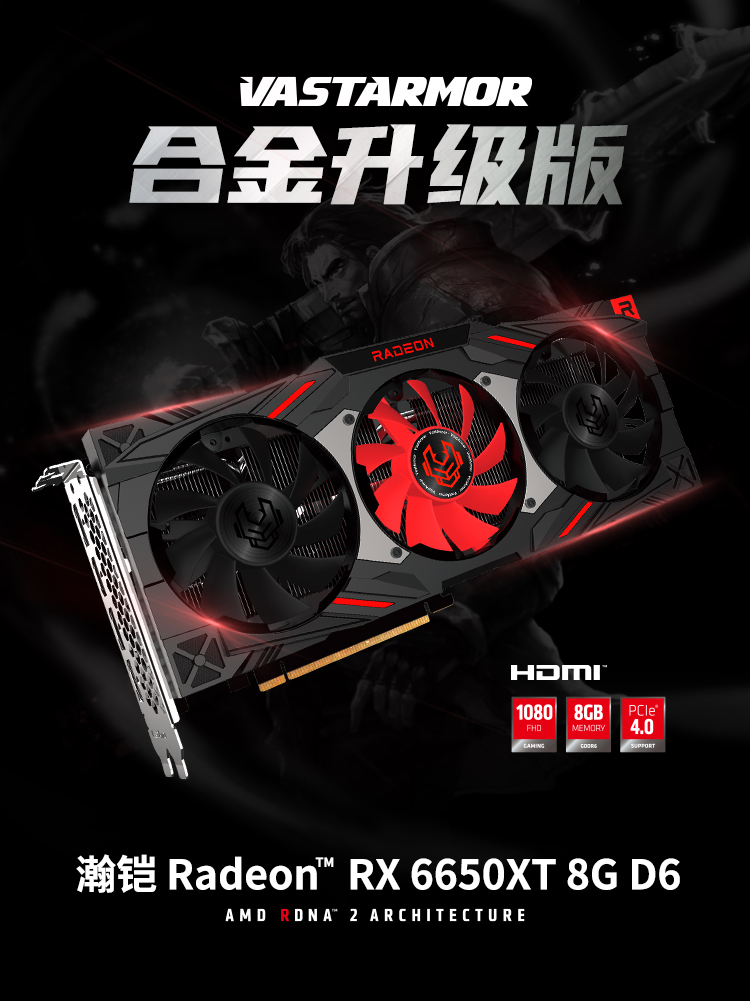 瀚铠(VASTARMOR)AMD Radeon RX 6650 XT 合金升级版 8GB OC GDDR6 RDNA 2架构 LED灯效电竞游戏显卡