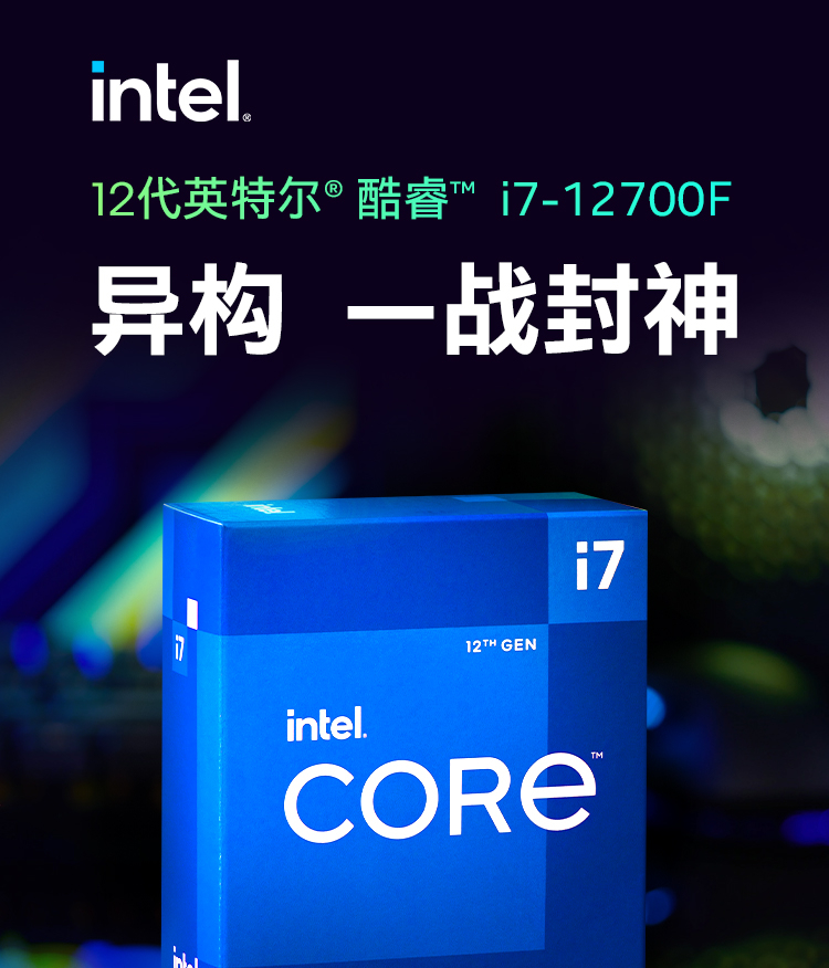 商品名称:英特尔(Intel) i7-12700F 12代 酷睿 处理器 12核20线程 单核睿频至高可达4.9Ghz 25M三级缓存 台式机CPU