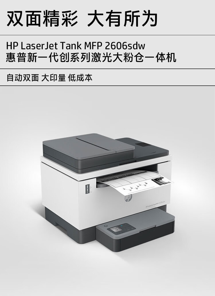 惠普(HP)2606sdw激光无线自动双面多功能一体机连续复印扫描 SOHO商用办公单页成本3分钱