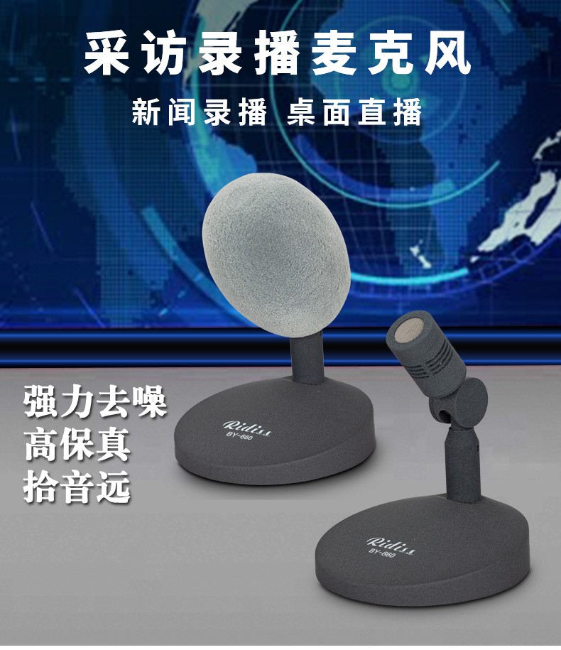 商品名称:Ridiss 新闻直播有线麦克风桌面录音鹅颈会议室系统主持访谈演讲采访话筒 短杆BY660