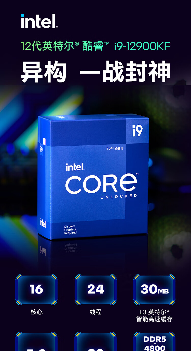 商品名称:英特尔(Intel) i9-12900KF 12代 酷睿 处理器 16核24线程 单核睿频至高可达5.2Ghz 30M三级缓存 台式机CPU