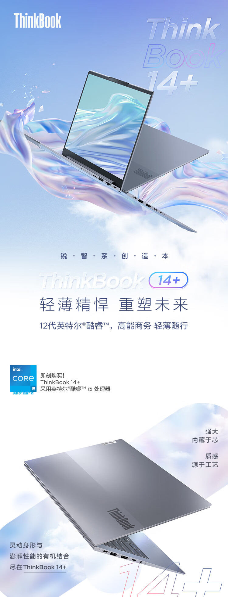 商品名称:联想ThinkBook 14+ 英特尔酷睿i5 笔记本电脑全新2022款 14英寸标压轻薄本i5-12500H 16G 512G 2.8K 90Hz